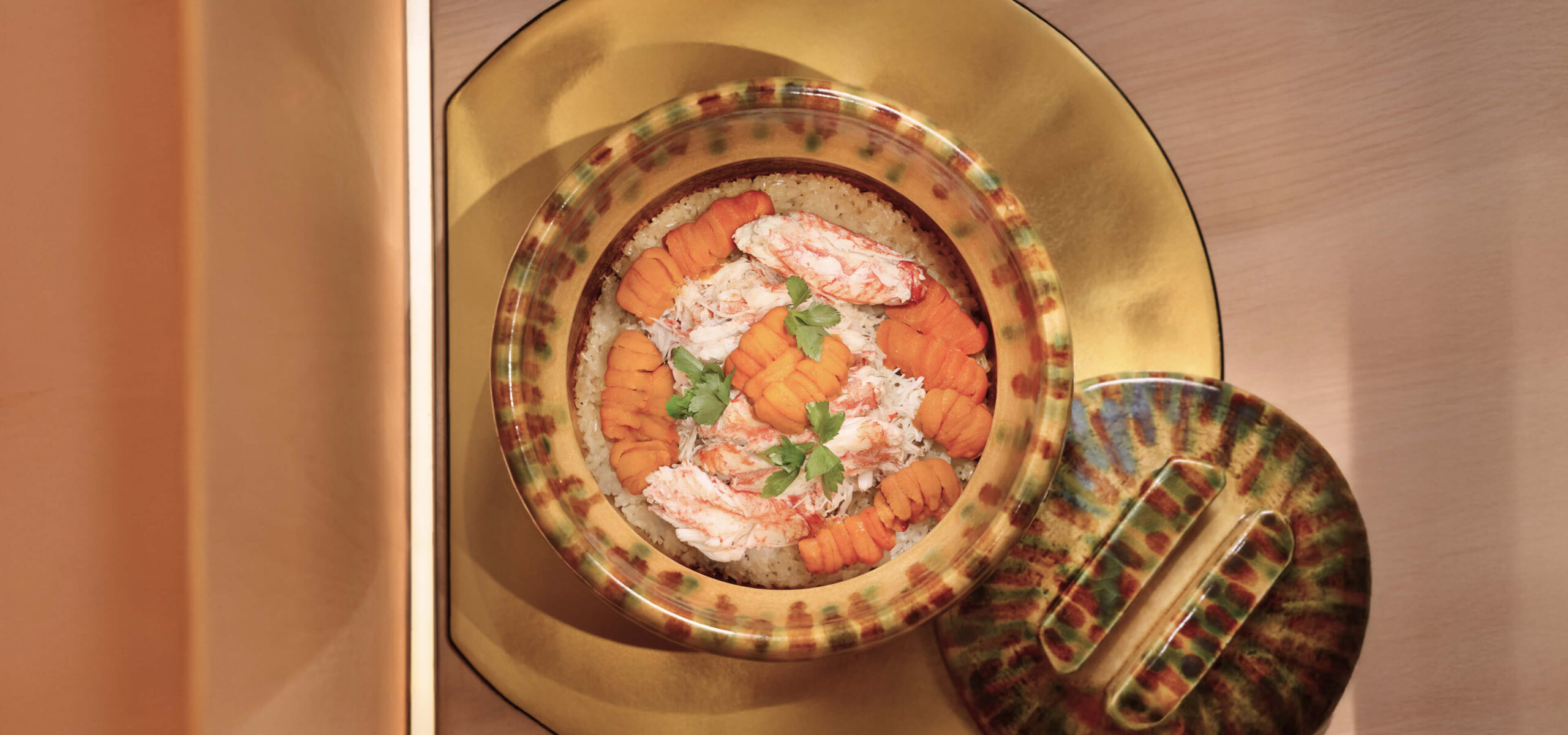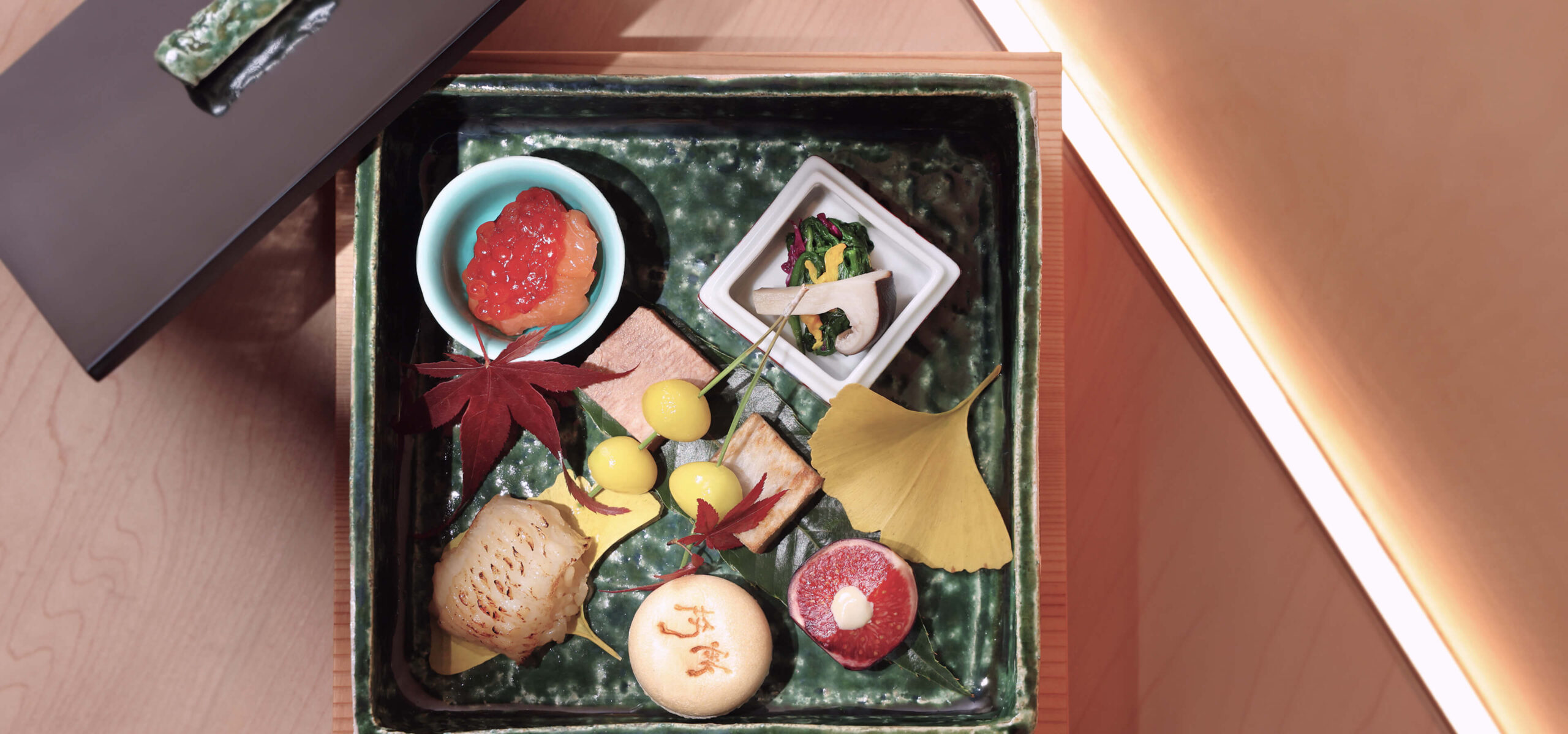 Originating in 16th-century Japan, Oribe-yaki is known for its vivid green glaze, expressive brushwork, and bold, asymmetrical forms. At Hana no Kumo, these distinctive ceramics embody the spirit of Kappou— celebrating seasonality, individuality, and artistry behind every dish.
